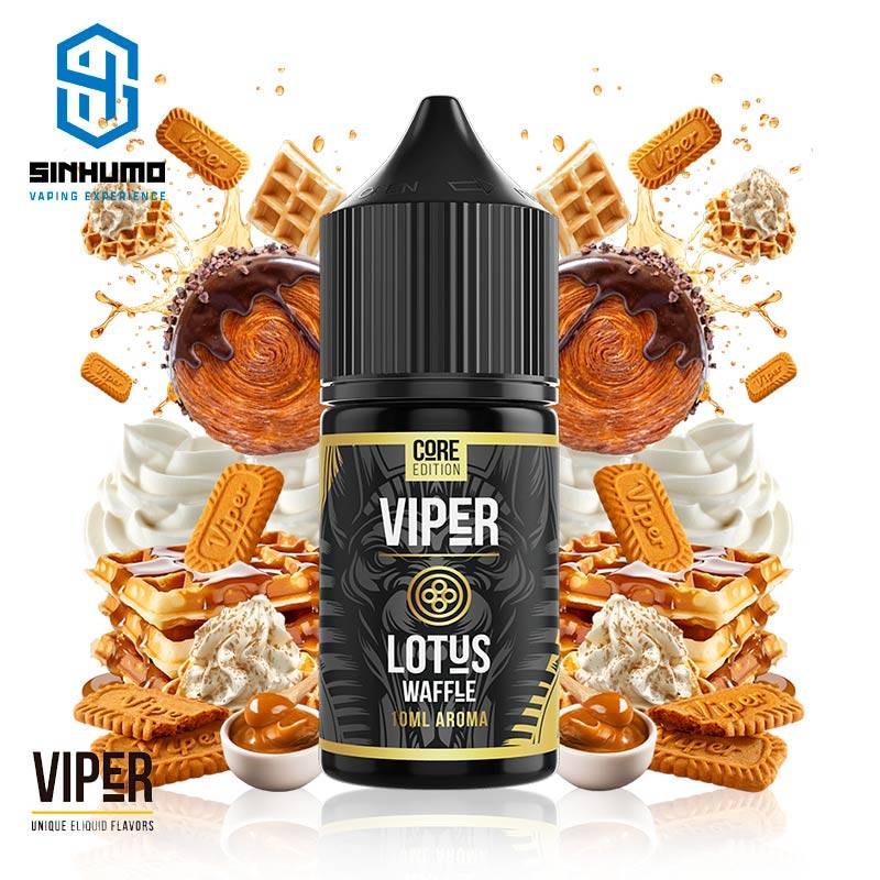 Viper nos presenta sus exquisitos sabores de siempre ahora en formato longfill edicion CORE, optimizado para ser más asequible que nunca. Lotus Waffle recrea a la perfección el crujiente sabor de un gofre con un sabor especiado de galleta lotus, fusionado con un cremoso dulce de leche y delicadas notas de chocolate blanco. El conjunto se corona con un suave remate de nata montada. Una experiencia sagrada, intensa, dulce y profunda.