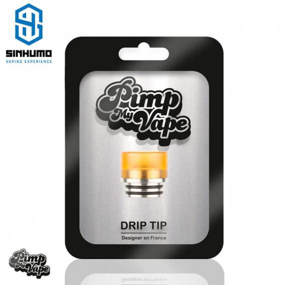 Drip tip 810 (PVM0025) de Pimp My Vape recto, de perfil corto y con dos tóricas. Con parte inferior en acero inoxidable y parte superior en Delrin o PEI