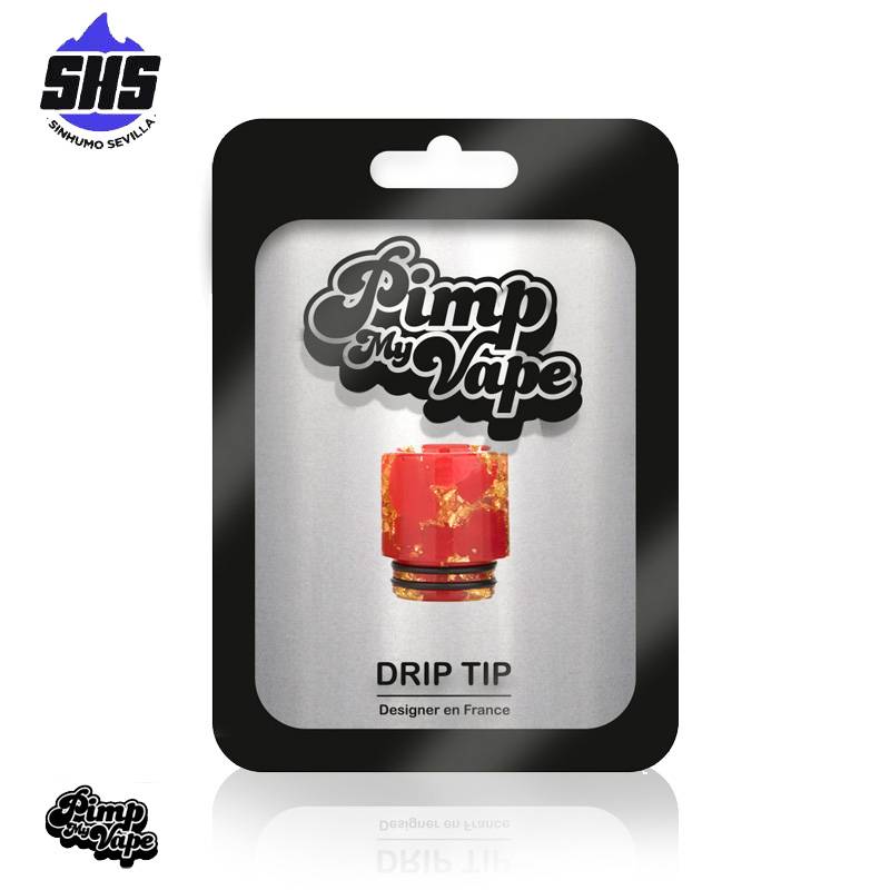 Drip tip 810 (PVM0022) de Pimp My Vape recto, de perfil corto y con dos tóricas. Con cuerpo fabricado en resina de diferentes acabados.